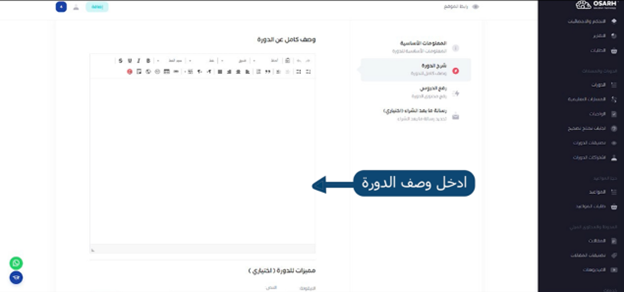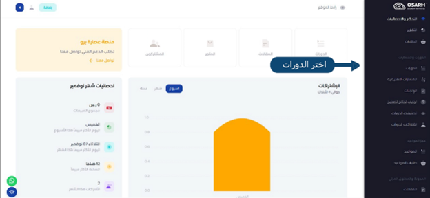 للبدء في الإطلاع والإضافة اضغط على "الدورات" من القائمة الجانبية