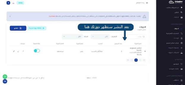 بعد الضغط على أيقونة "نشر" تظهر الدورة